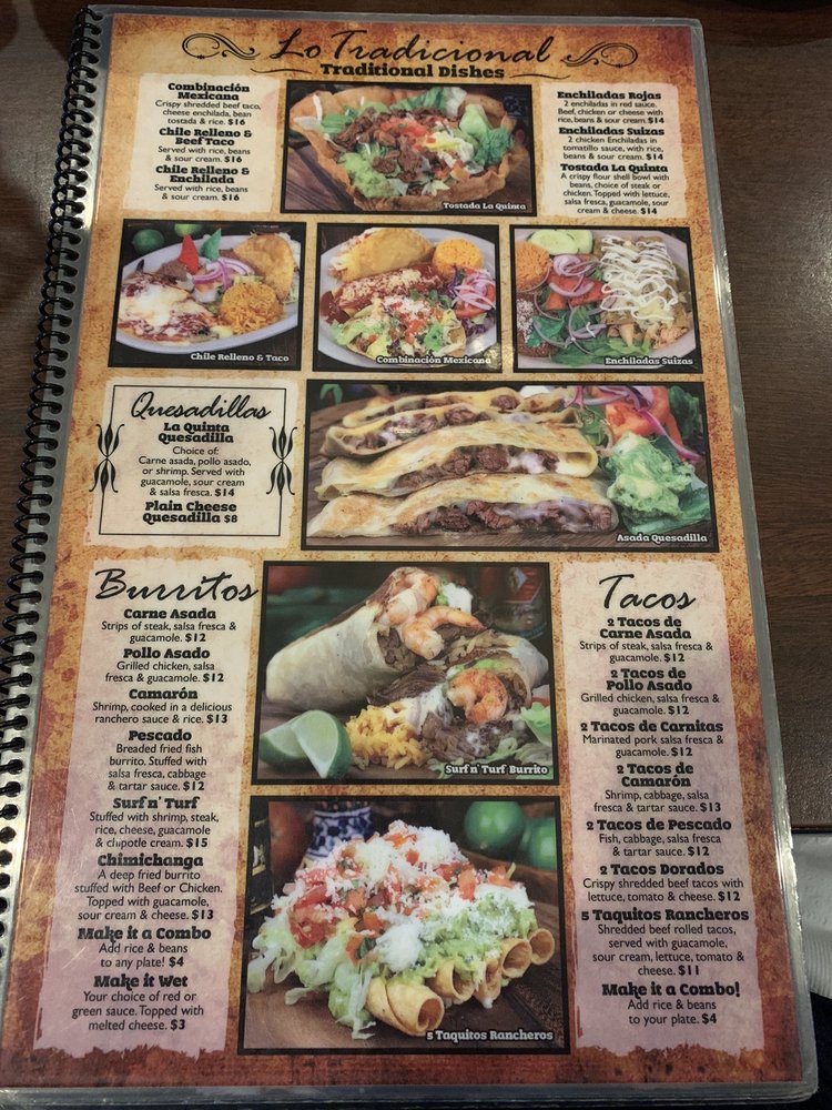 La Quinta Grill Mexican Restaurant & Bar offers a vibrant dining experience in Chula Vista, CA. This casual yet lively establishment provides a range of amenities such as takeout, delivery, catering, and even live music. The menu boasts traditional Mexican dishes like Carne asada Quinta and Chile verde, prepared with expertise. Customers have raved about the flavorful food, generous portions, and hospitable service, noting favorites like the Horchata and Nopal salad. The ambiance is praised for its authenticity, with mariachi music adding to the atmosphere. La Quinta Grill stands out for its prompt service and attention to customer satisfaction. Whether enjoying brunch, dinner, or happy hour specials, this restaurant promises a memorable dining experience with delicious offerings.